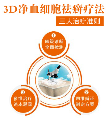 银屑病3D净血细胞祛癣疗法通过对银屑病病理机制进行追本溯源,将最新“易感基因”研究成果运用到临床治疗中,免疫靶向治疗对源头进行控制,阻断银屑病病理形成机制;通过对免疫系统调节,促进易感基因自体修复,避免再次活化可能;同时通过多维治疗,增强患者自身抵抗力,形成一个系统、立体的康复网络。
