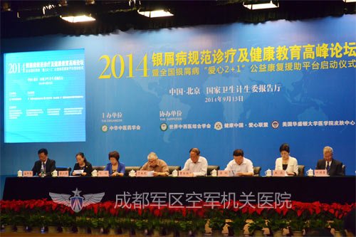 9月13日,由中华中医药学会主办,世界中西医结合学会、健康中国·爱心联盟、美国华盛顿大学医学院皮肤中心联合协办的2014银屑病规范诊疗及健康教育高峰论坛暨全国银屑病“爱心2+1”公益康复援助平台启动仪式在国家卫计委(中华人民共和国国家卫生和计划生育委员会)隆重召开。众所周知,银屑病是严重影响人们日常生活的常见多发性疾病。据权威数据显示,银屑病正在越来越频繁地影响人类的健康,影响人类的正常生活,越来越多的患者受到银屑病侵害,因此,银屑病已经成为我国乃至世界亟待解决的健康问题。
